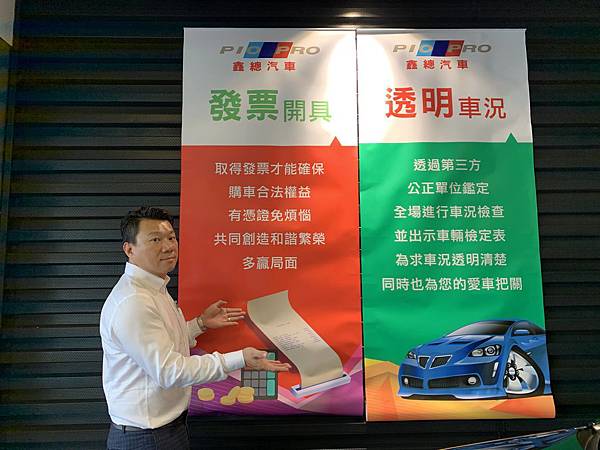 『而且你要知道喔,我們鑫總裡面,所有的車輛都有GOO第三方認證鑑定』
